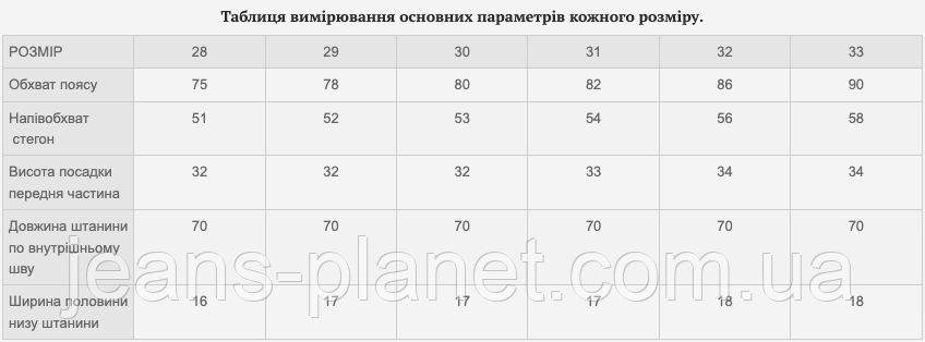 • Більш детальну інформацію про товар і про те, як підібрати правильно визначити свій розмір, дивіться на нашому сайті Jeans Planet.