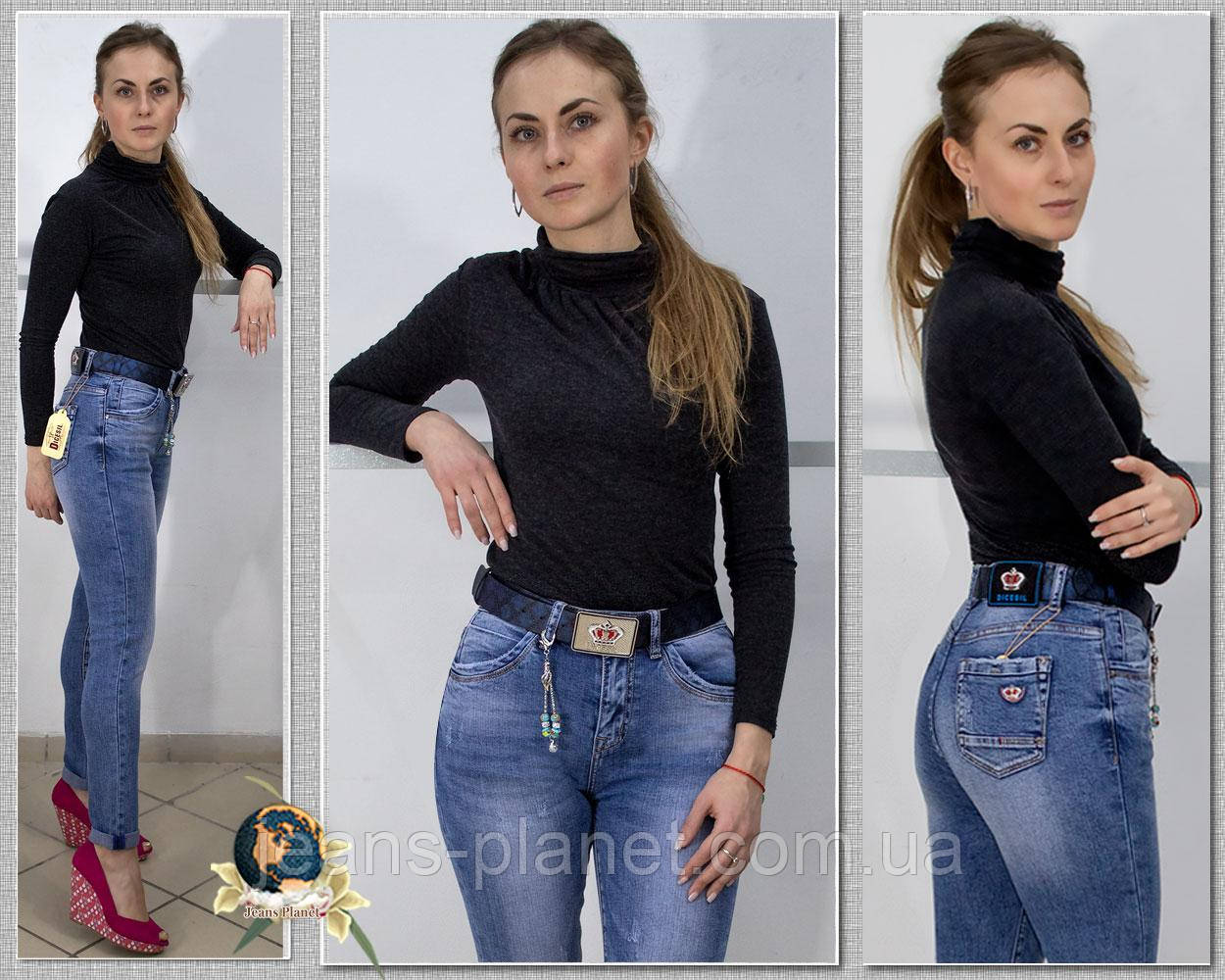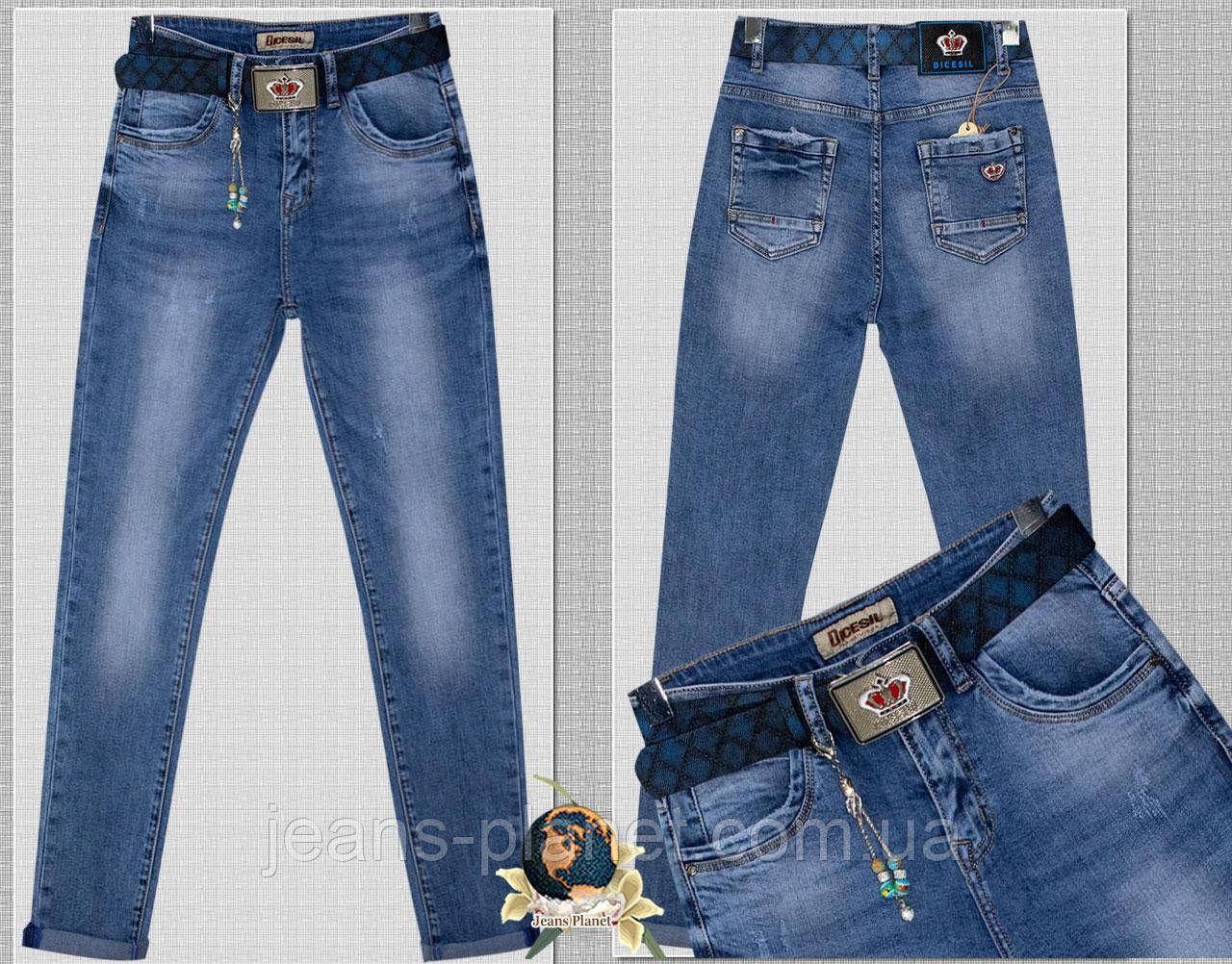 Джинси жіночі класика з високою посадкою ременем і брелоком