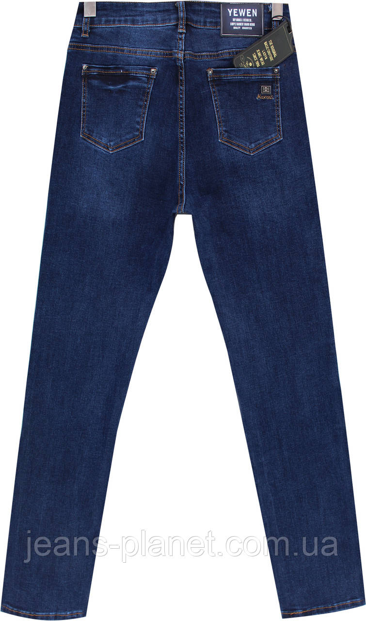 - Класичні джинси з високою посадкою і трохи приуженной штаниною. Пошиті з якісного, щільного стрейчевого котону синього кольору, злегка высветленного на передніх штанинах і в області задніх кишень.