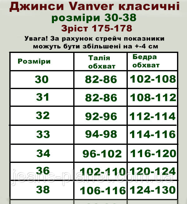 | Ширина низу штанини | 20 | 21 | 21 | 22 |