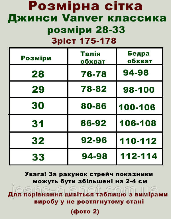 | розмір | 28 | 29 | 30 | 31 | 32 | 33 |