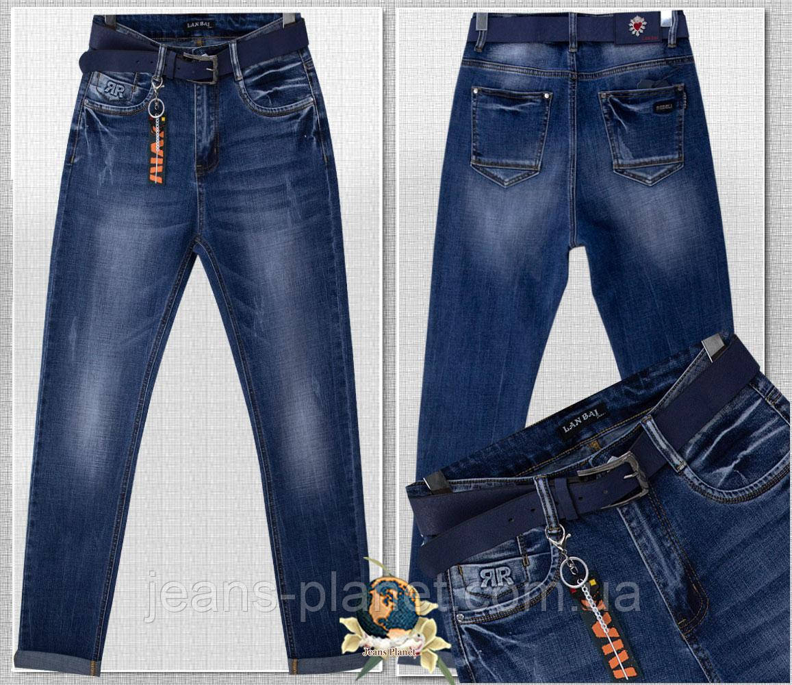 Модні жіночі джинси батали на високій талії з ременем і брелоком 32-й розмір