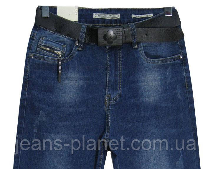 Модні жіночі прямі джинси батали з потертостями та ременем Version