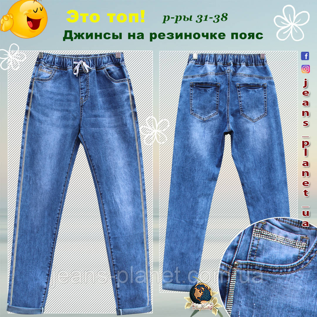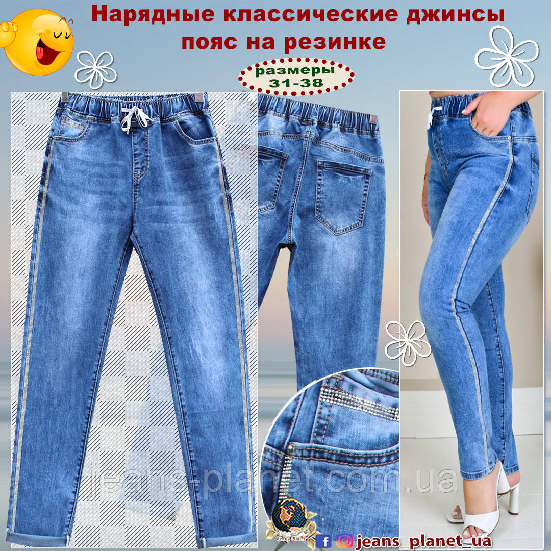 Ошатні жіночі джинси з високою посадкою пояс на резинці