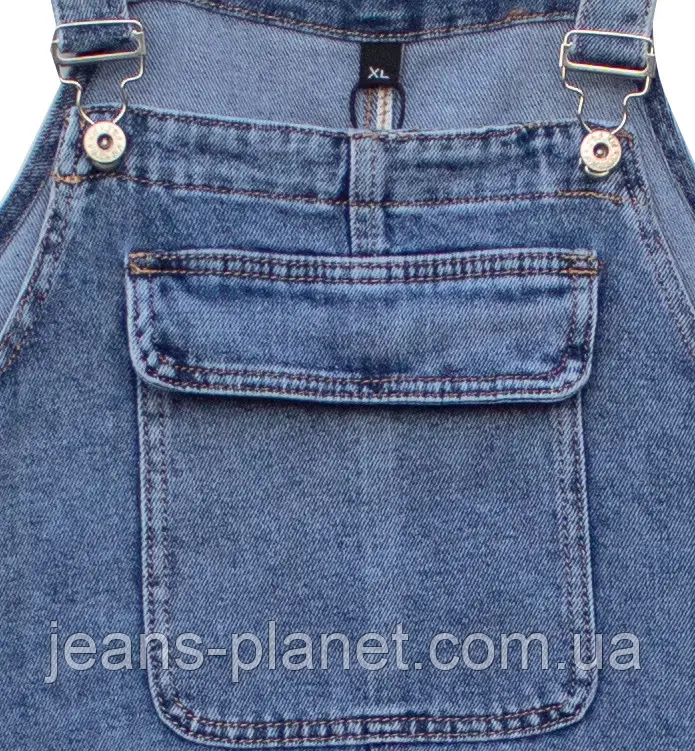 • Стиль моделі: прямий сілует, загальна довжина разом з грудкою 74-76 см. Грудка висотою 22-25 см, по центру зручна кишеня. Застібається комбінезон на гудзики, розташовані з двох боків сарафана. Довжина лямок регулюється спеціальними кріпленнями. Дві оригінальні кишені по центру бічних швів.  Модний, ошатний, — чудовий весняно-літній варіант