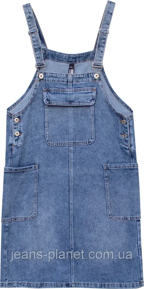 • Джинсові сарафани-комбінезони знову на піку моди! Оригінальний сарафан блакитного кольору довжиною до коліна.
