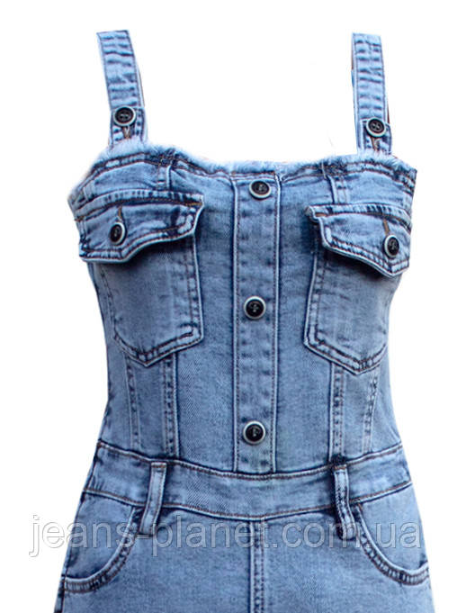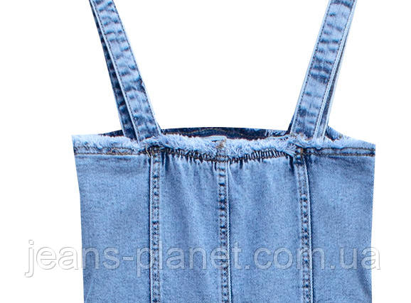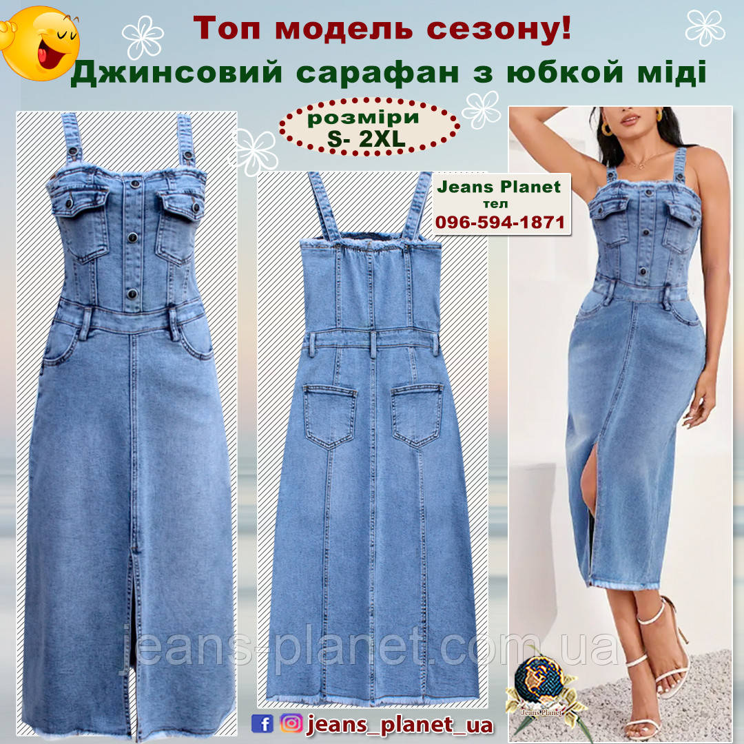 Модний жіночий джинсовий сарафан- комбінезон з юбкой міді Liana
