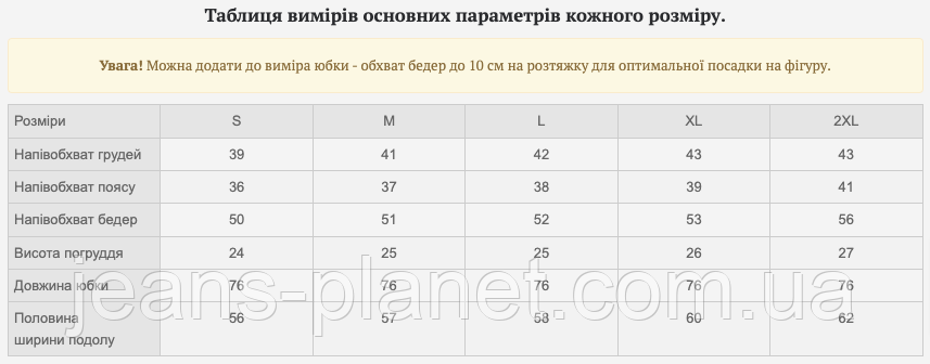 | Довжина юбки | 76 |