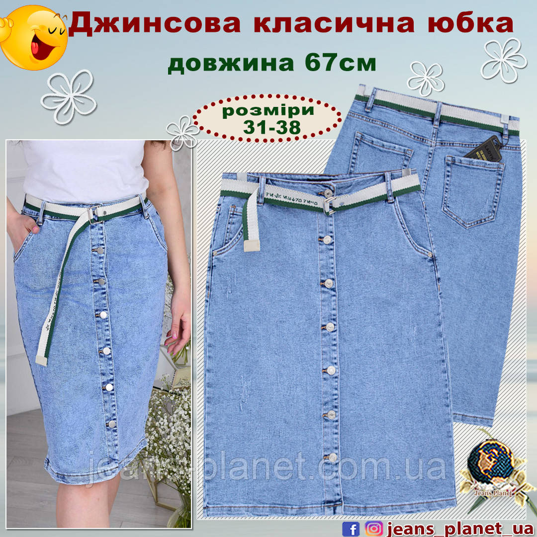 Джинсова спідниця класична на ґудзиках Lady N довжина 67 см