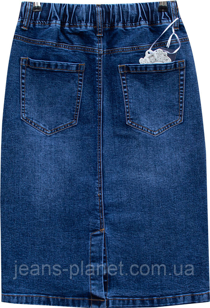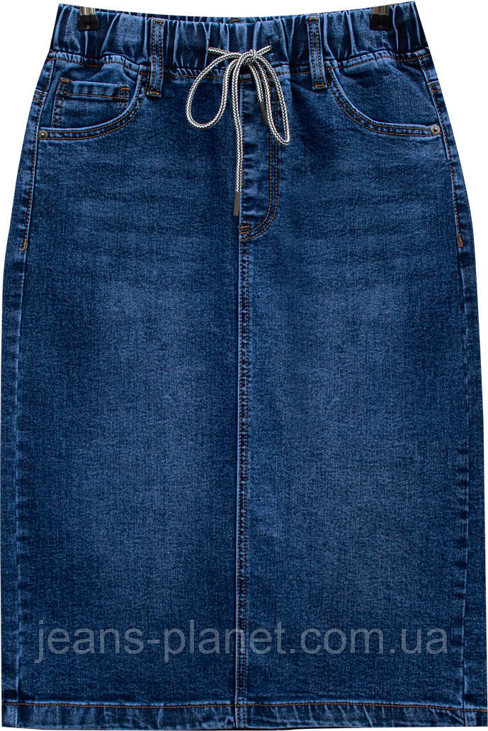 Модна джинсова спідниця міді на резинці темно-синього кольору 7031