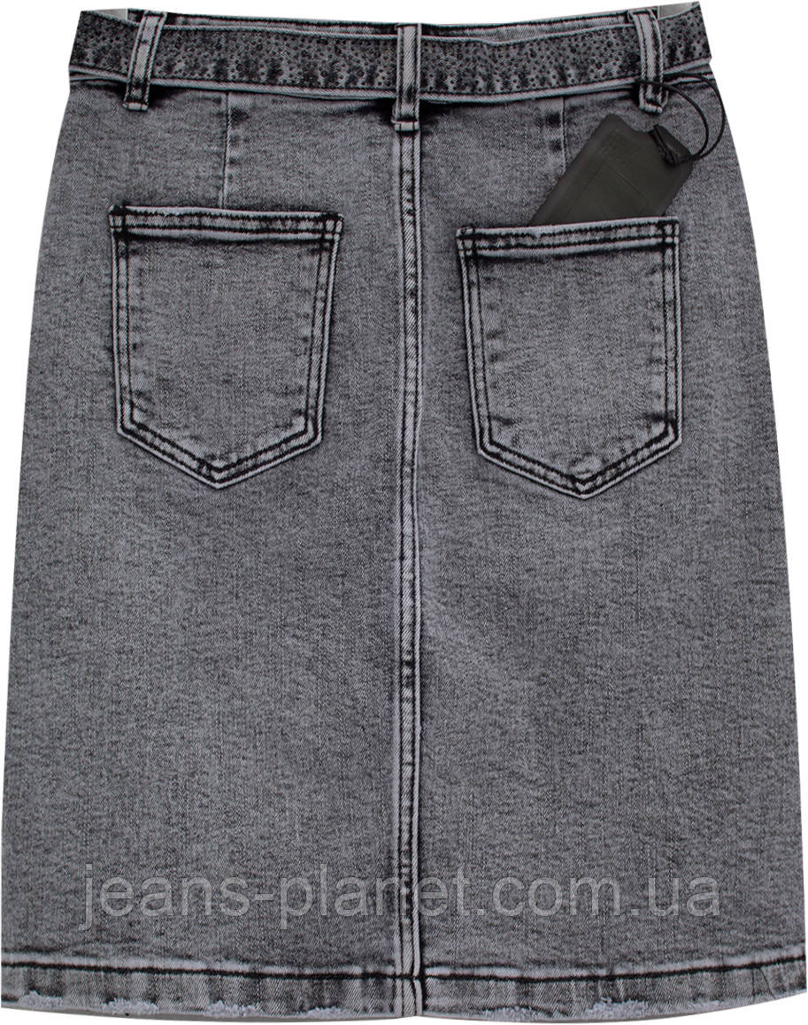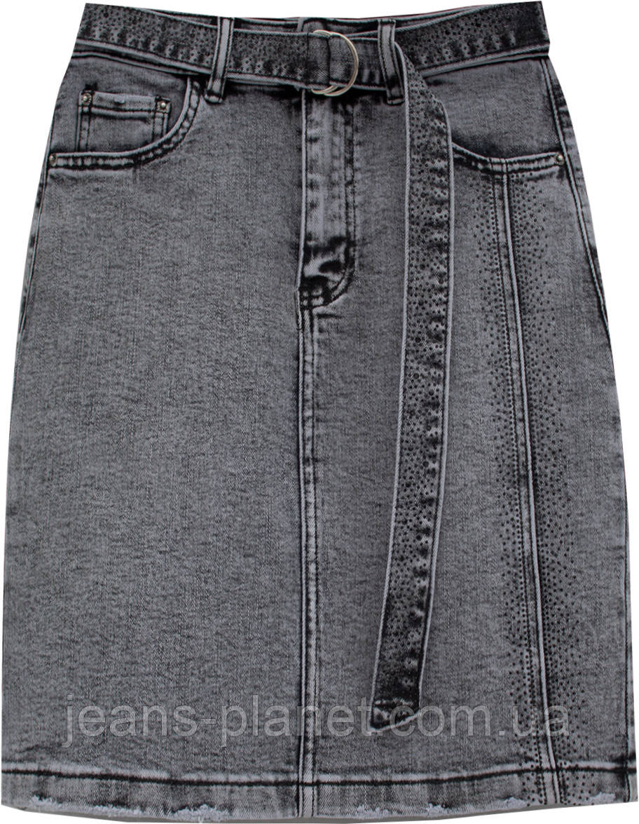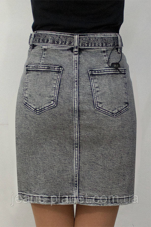 Модна джинсова спідниця сірий графіт з чорними стразами