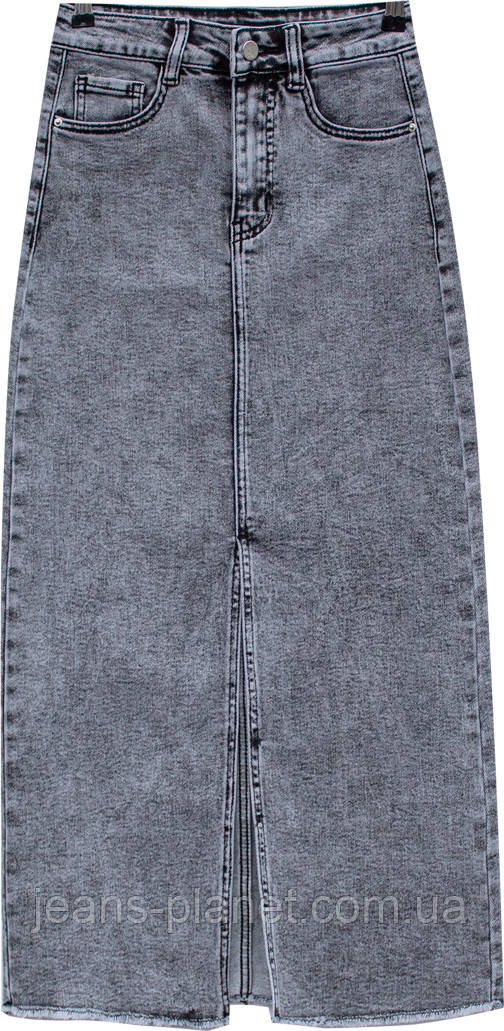 - Найпопулярніша в цьому сезоні довга джинсова спідниця максі з якісного котону сірого кольору.