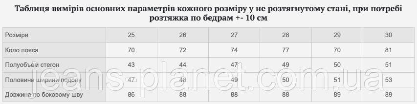 - Більш детальну інформацію про товар і про те, як правильно визначити свій розмір, дивіться на нашому сайті Jeans Planet.