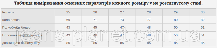 - Більш детальну інформацію про товар і про те, як правильно визначити свій розмір, дивіться на нашому сайті Jeans Planet.