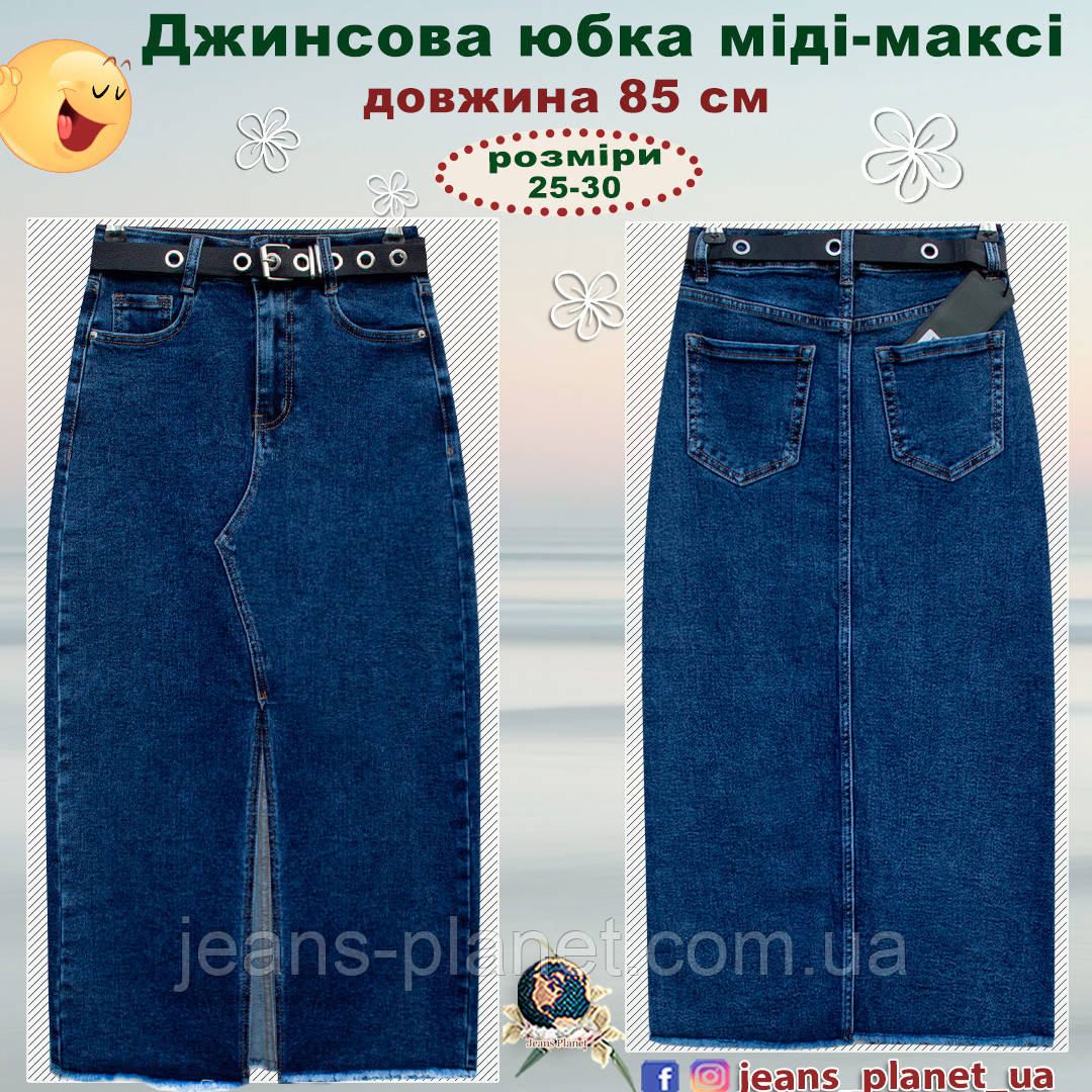 Наймодніша довга джинсова спідниця міді — максі з ременем Lady N