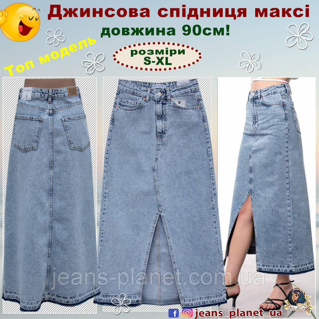 - Найпопулярніша в цьому сезоні довга джинсова спідниця максі з м'якого котону світло-блакитного кольору