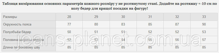 - Більш детальну інформацію про товар і про те, як правильно визначити свій розмір, дивіться на нашому сайті Jeans Planet.