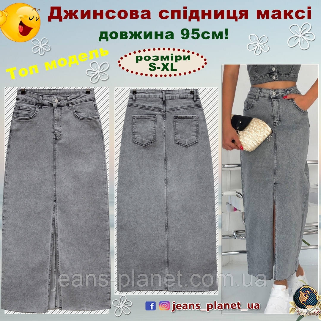 Наймодніша довга джинсова спідниця максі з розрізом тор-Ш