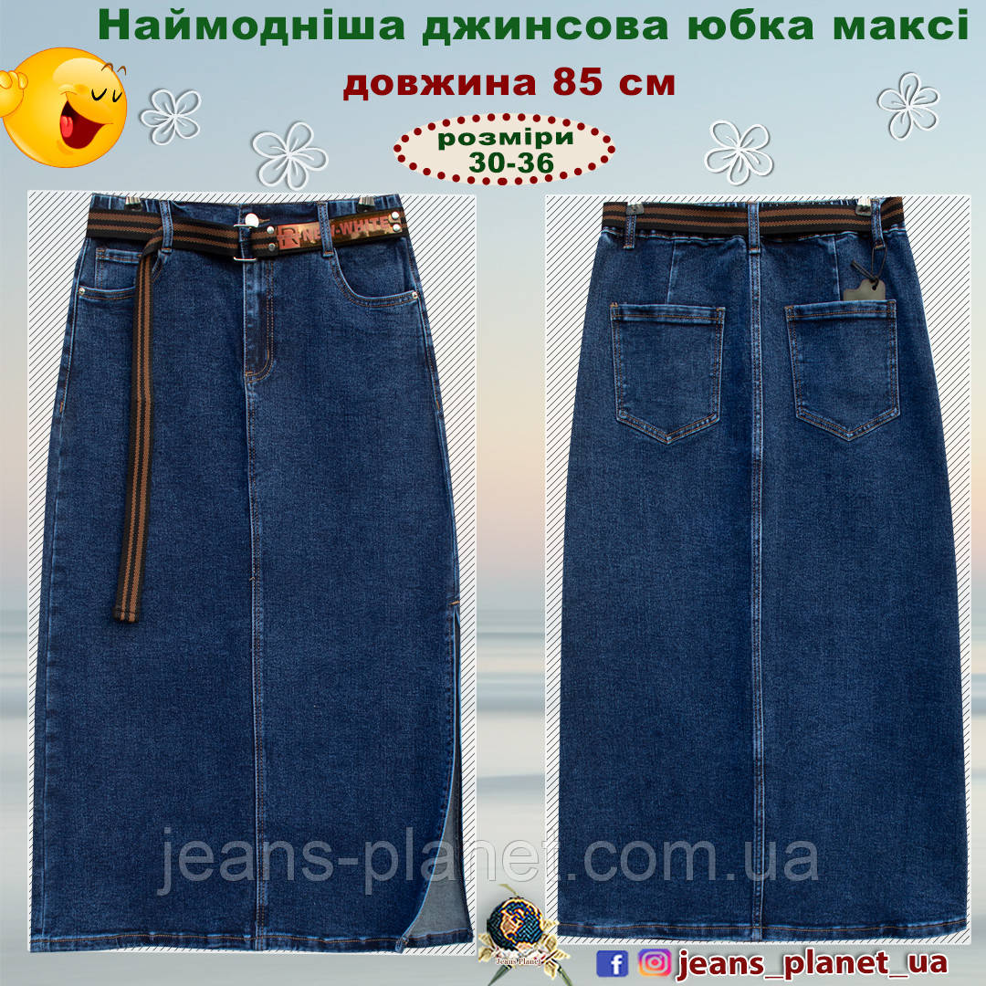 - Найпопулярніша в цьому сезоні довга джинсова спідниця з якісного стрейчевого котону синього кольору