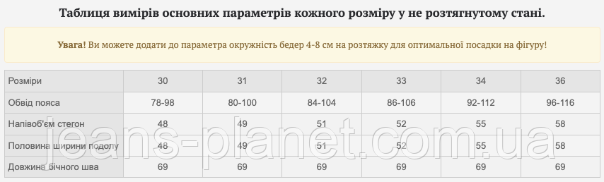 Увага! Якщо Ви робите замовлення в каталозі Prom.ua, перевірте правильність обраного розміру, для цього скопіюйте посилання під цим текстом і вставте його в пошук браузера. Посилання — веде на цю позицію на нашому сайті. Після переходу на сайт натисніть на виділений текст Пройти в примірювальну. , ознайомтеся з нашими рекомендаціями та обирайте розмір за таблицею