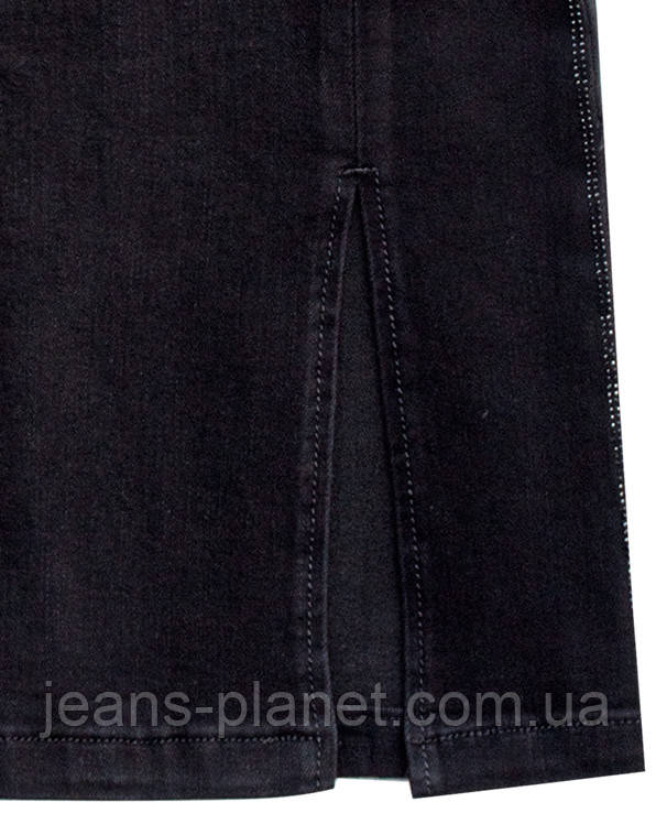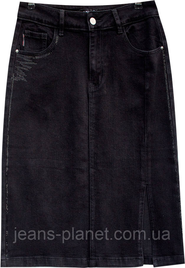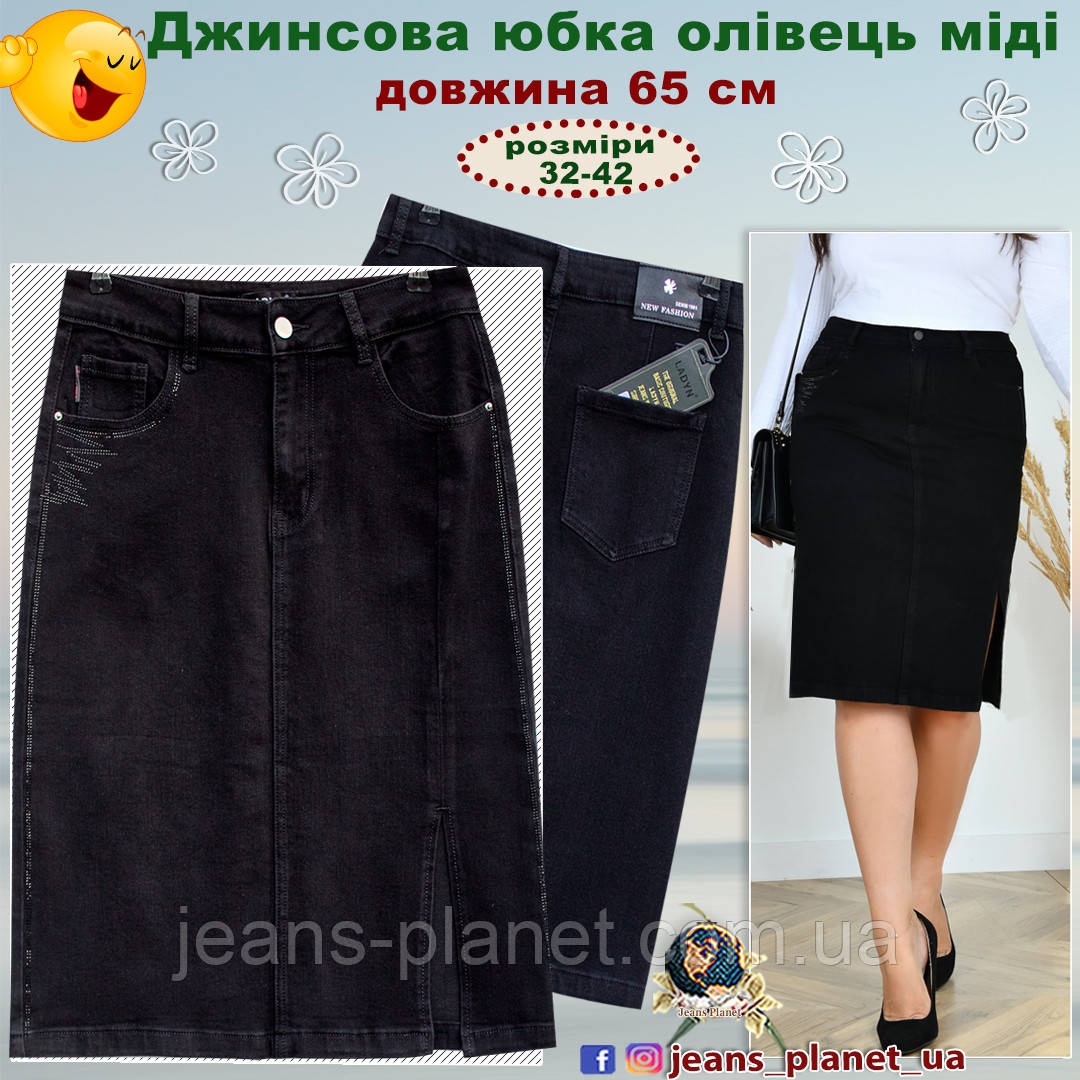 - Елегантна джинсова спідниця олівець з м'якого стрейчевого котону чорного кольору класичної довжини, що закриває коліно.