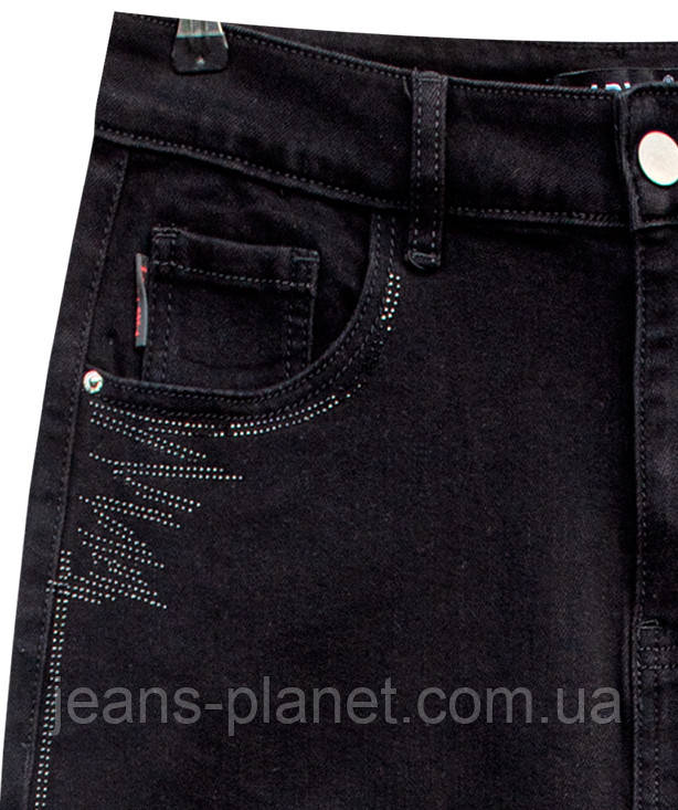 - Елементи дизайну: стильне прикраса металевими стразиками чорного кольору під лівою передньою кишенею і вздовж бічних швів.