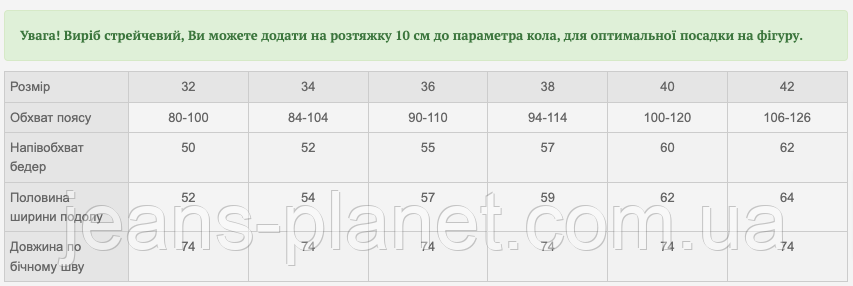 | Розмір | 32 | 36 | 38 | 40 | |