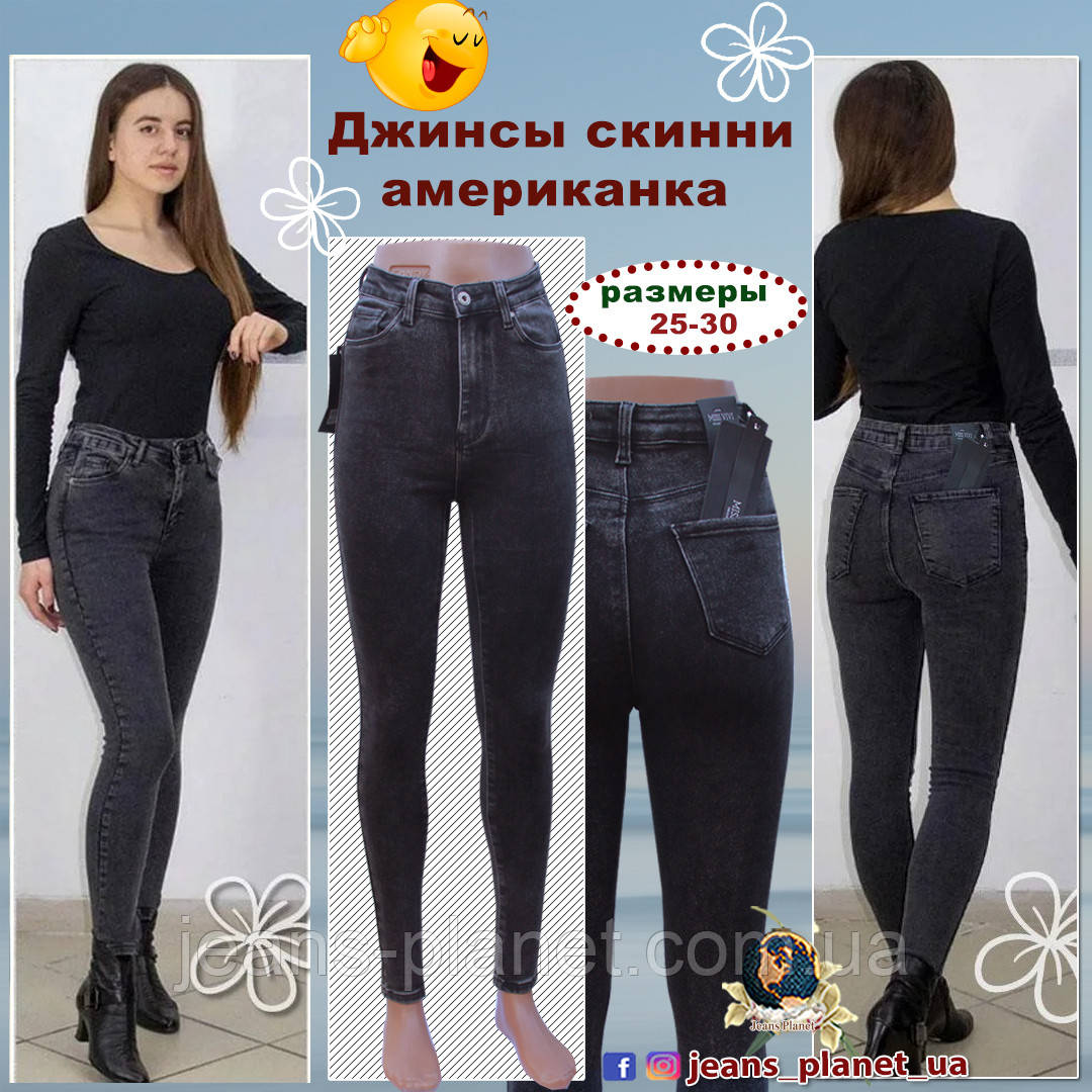 Джинси жіночі завужені на високій талії Американка сірий графіт