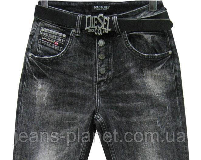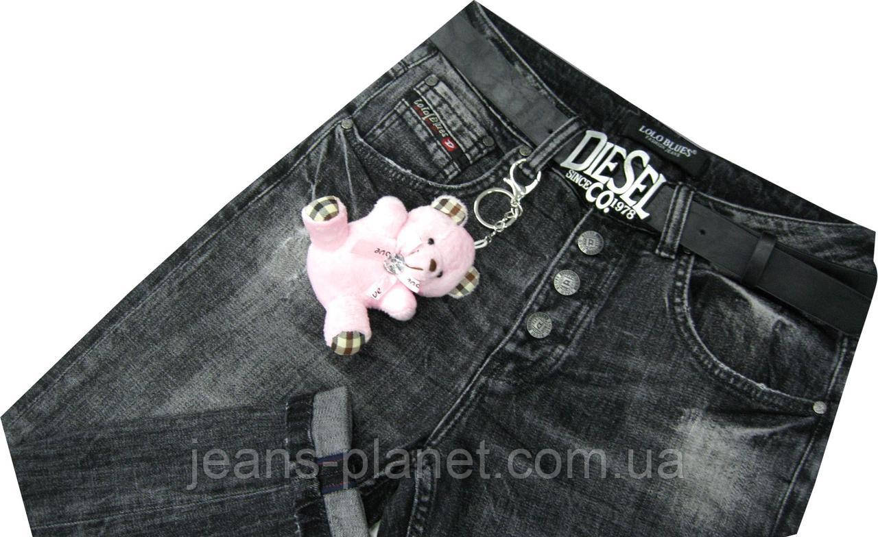 - Модні жіночі джинси чорно-сірого кольору на ґудзиках із ременем і брелоком.