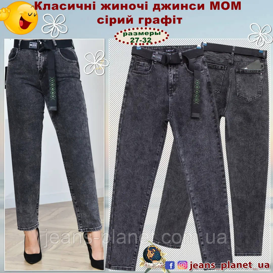 Джинси жіночі класичні МОМ колір сірий графіт Lady N