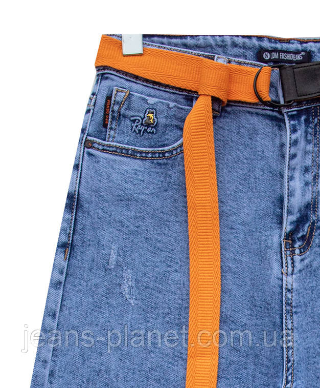 • Новинка сезону 2023! Модні джинси Мом блакитного кольору з подряпинами.
