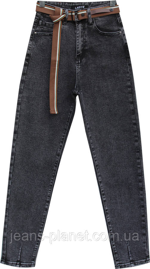 Джинси жіночі Мом сірого кольору з поясом Lady N