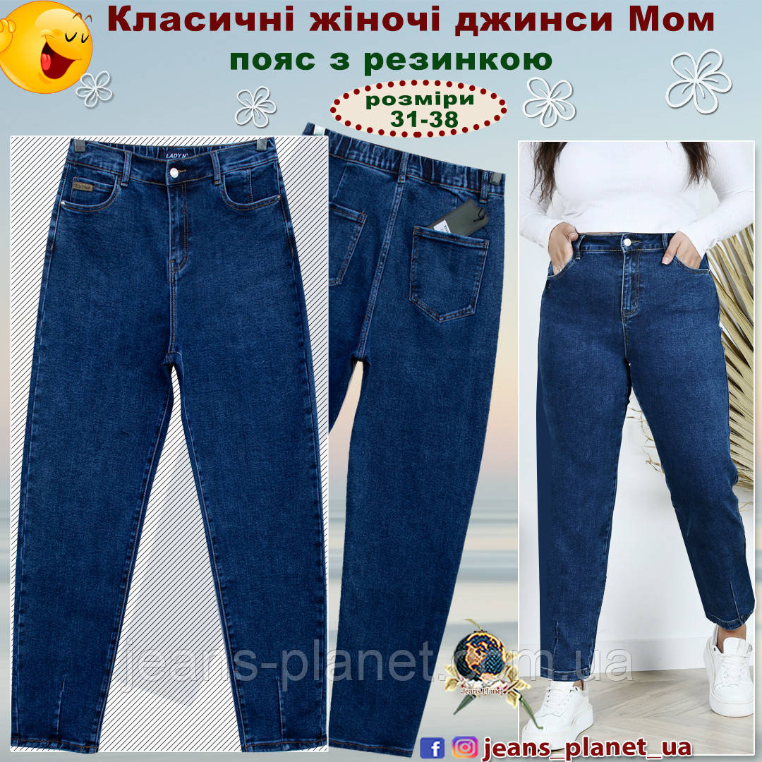 Класичні жіночі джинси Мом Lady N пояс з резинкою 38 розмір