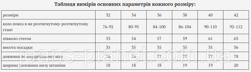 - Для визначення розміру пройдіть будь-ласка в нашу примірювальну. Заміри, зазначені в таблиці, зроблені за рекомендаціями нашої примірювальній, розділ "Міряємо не себе а свої улюблені джинси"