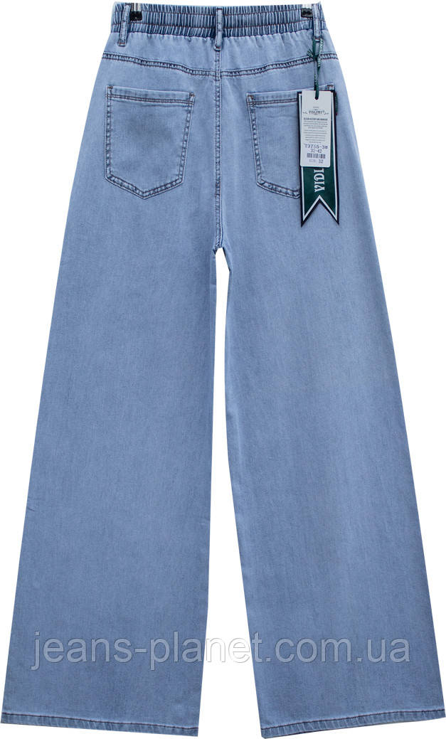 Легкі літні жіночі джинси палацо на резинці блакитного кольору 3751