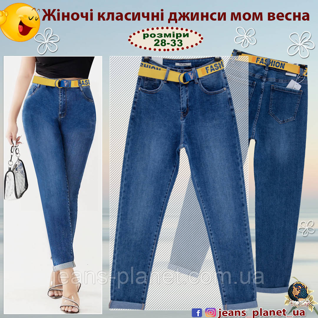 Модні жіночі класичні джинси Mom синього кольору Pink Girl