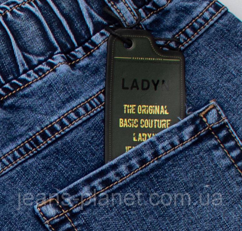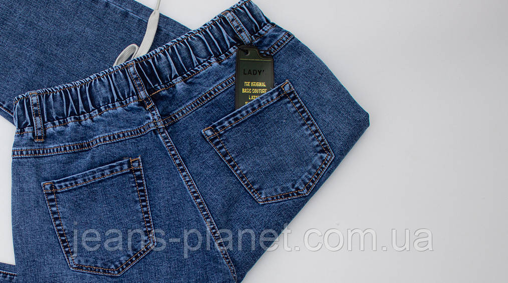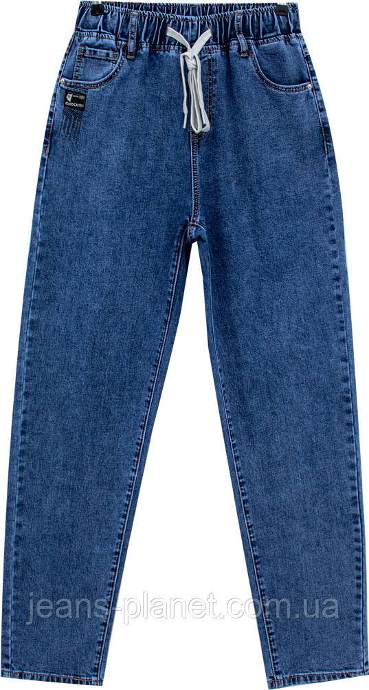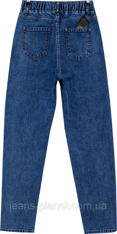 Модні вільні жіночі джинси Мом пояс на резинці світло-синього кольору