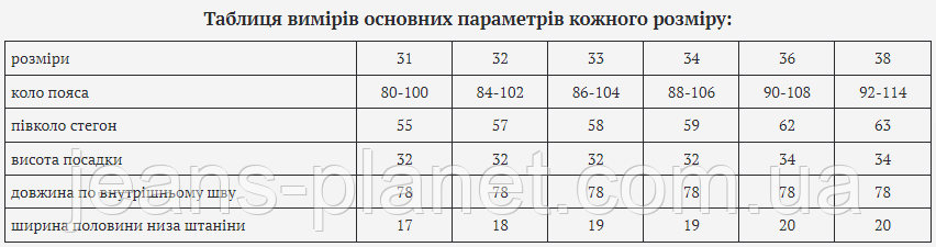 - Для визначення розміру пройдіть будь-ласка в нашу примірювальну. Виміри, зазначені в таблиці, зроблені за рекомендаціями нашої примірювальній, розділ "Міряємо не себе а свої улюблені джинси"