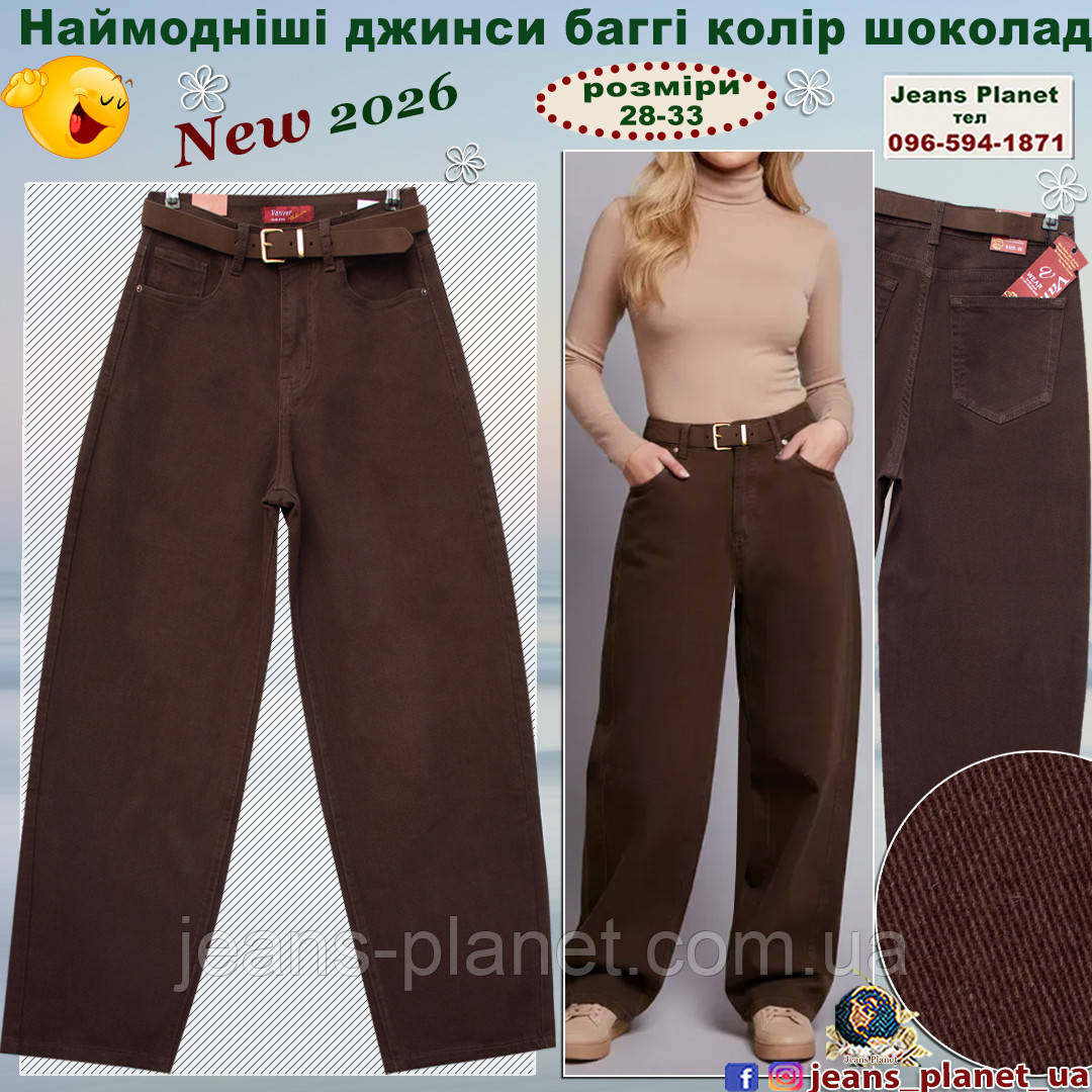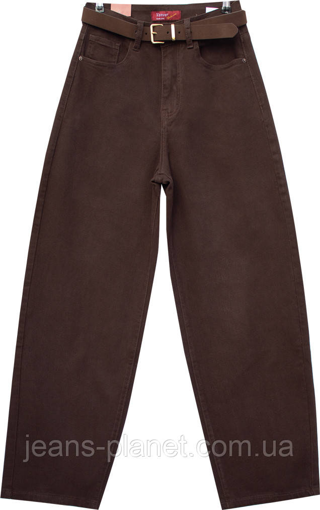 Модні жіночі джинси баггі колір коричневий шоколад шоколад Vanver 82173