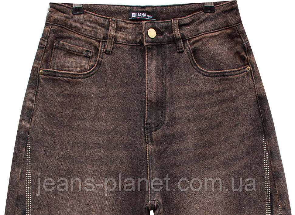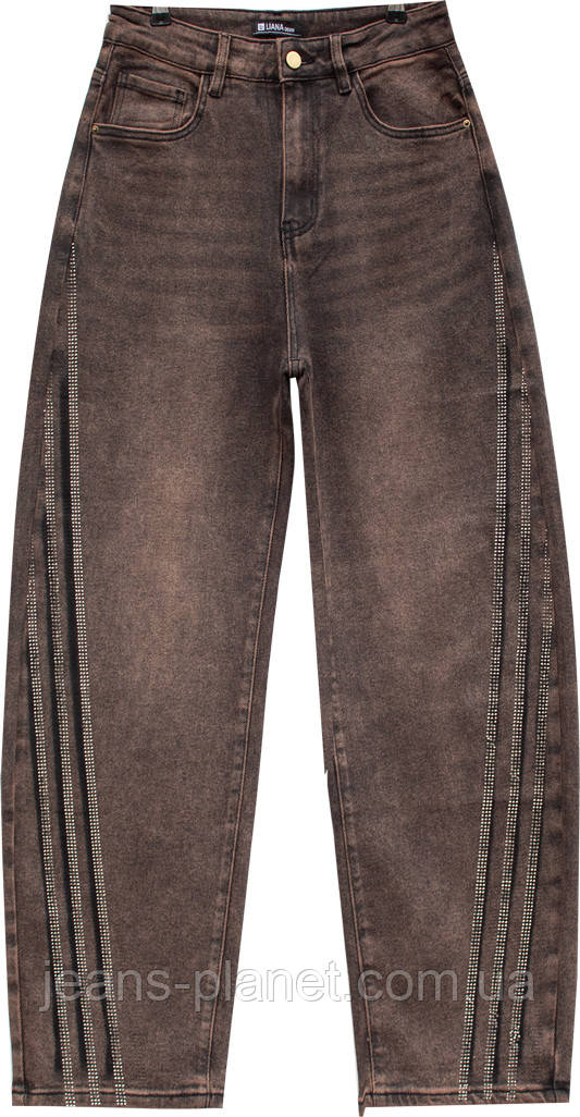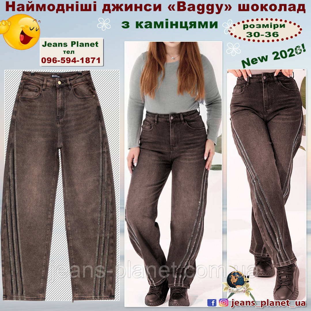Модні жіночі джинси баггі колір шоколад з камінцями Liana 547