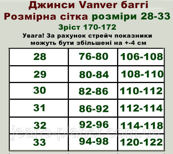 | розмір | 28 | 29 | 30 | 31 | 32 | 33 |