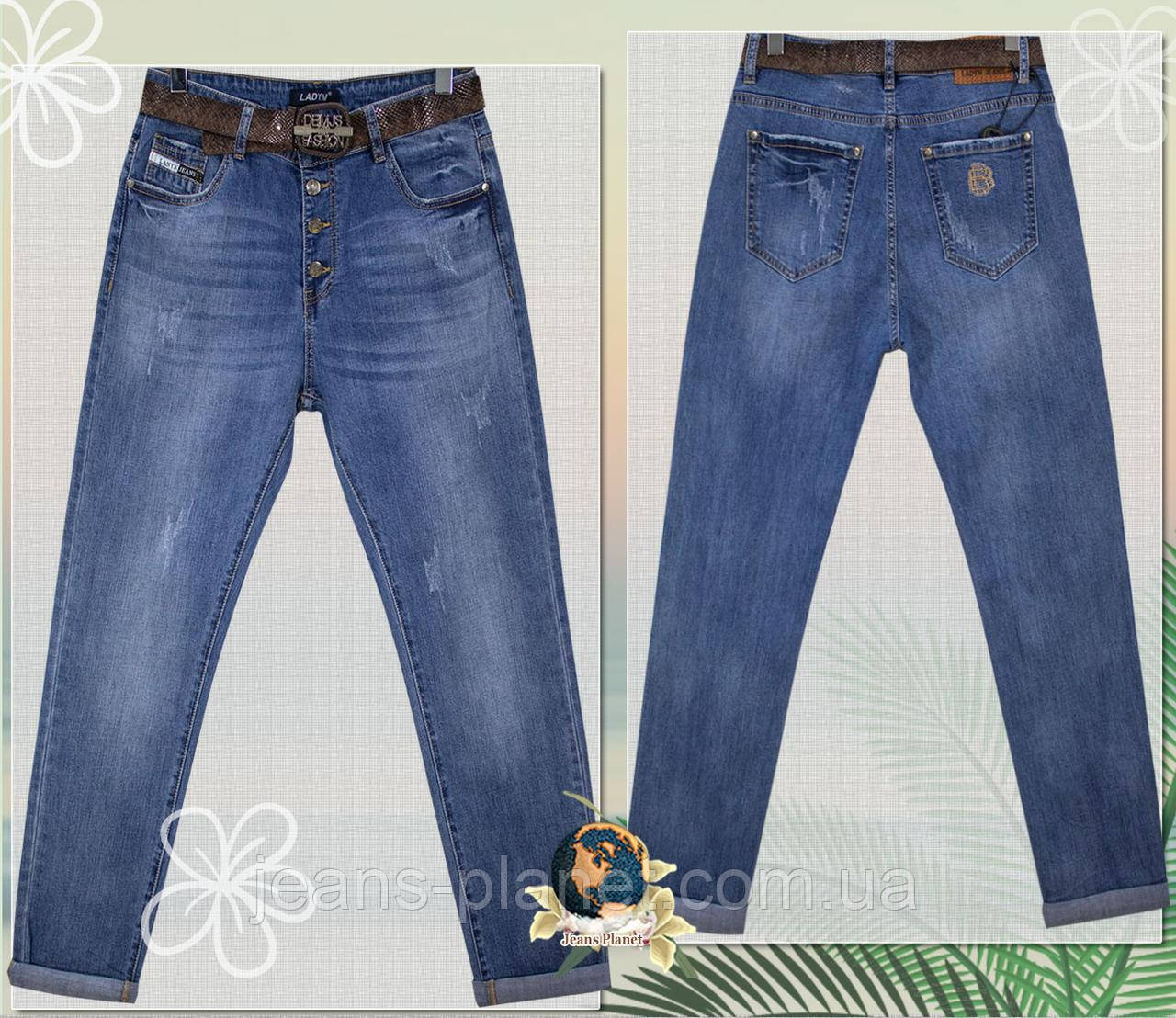 Модні жіночі джинси бойфренди баталов на гудзиках з ременем