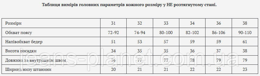- Більш детальну інформацію про товар і про те, як правильно визначити свій розмір, дивіться на нашому сайті Jeans Planet.