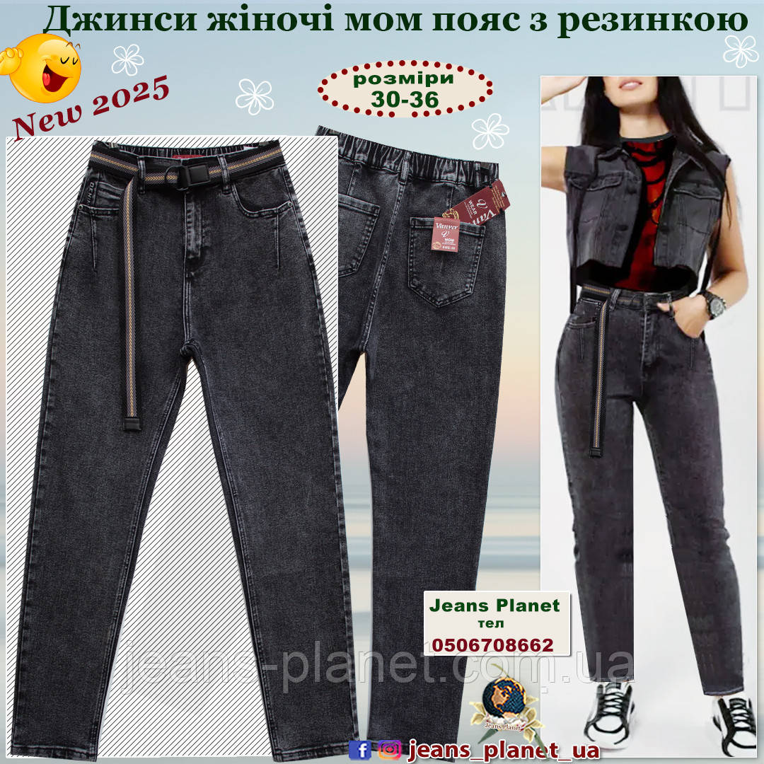 • Нові моделі жіночої джинсової колекції "Весна — Осінь 2025"! Модна зручна модель мом ошатного графітного кольору.