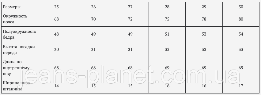 Виміри в таблиці зроблені за рекомендаціями нашої Примірювальній.