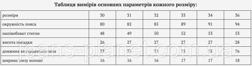 • Докладну інформацію про товар і про те, як підібрати розмір цього виробу, дивіться в нас на сайті Jeans Planet.