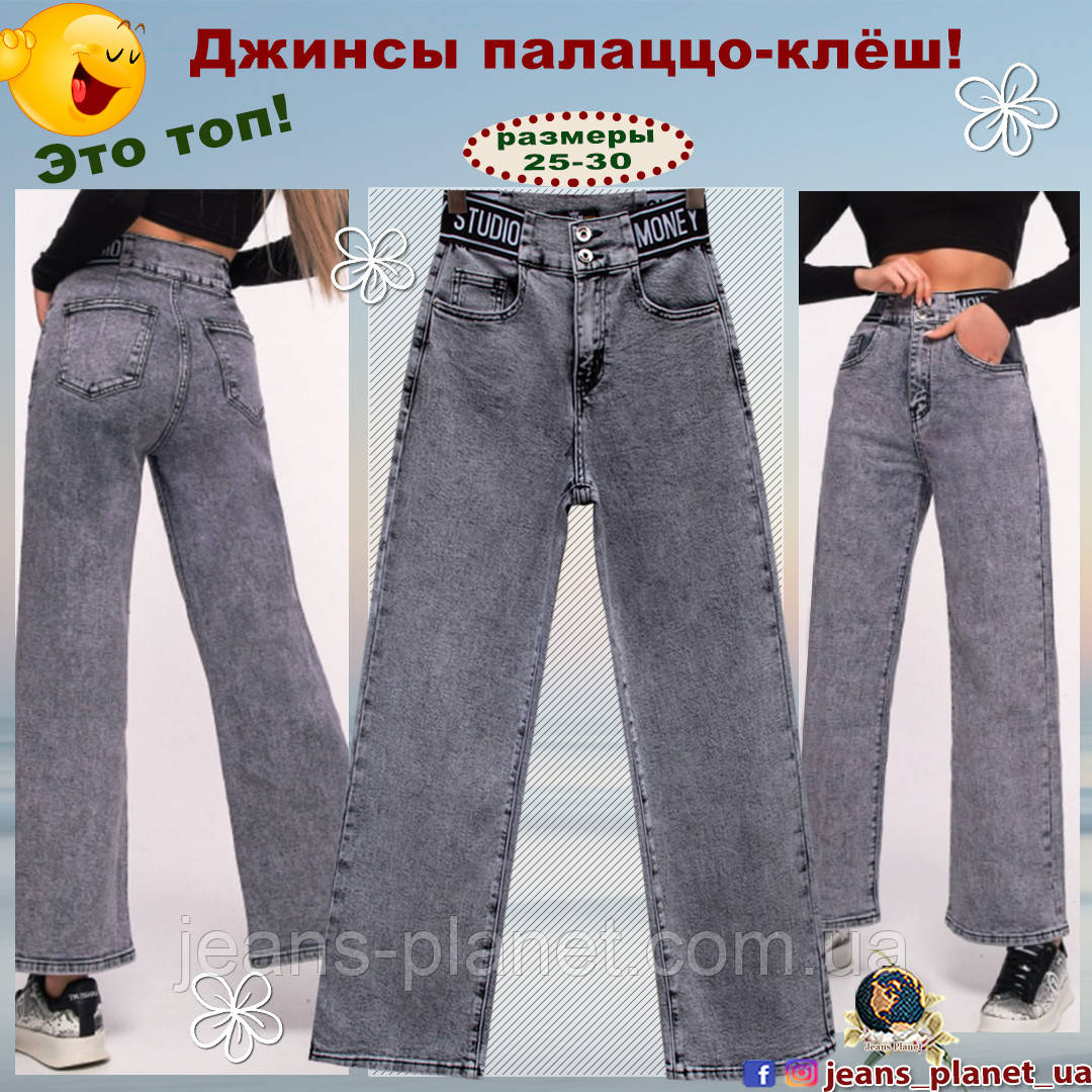 Модні жіночі джинси палаццо-клеш сірого кольору LDM