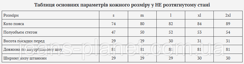 Ширина низу штанини 29 29 29 30 30