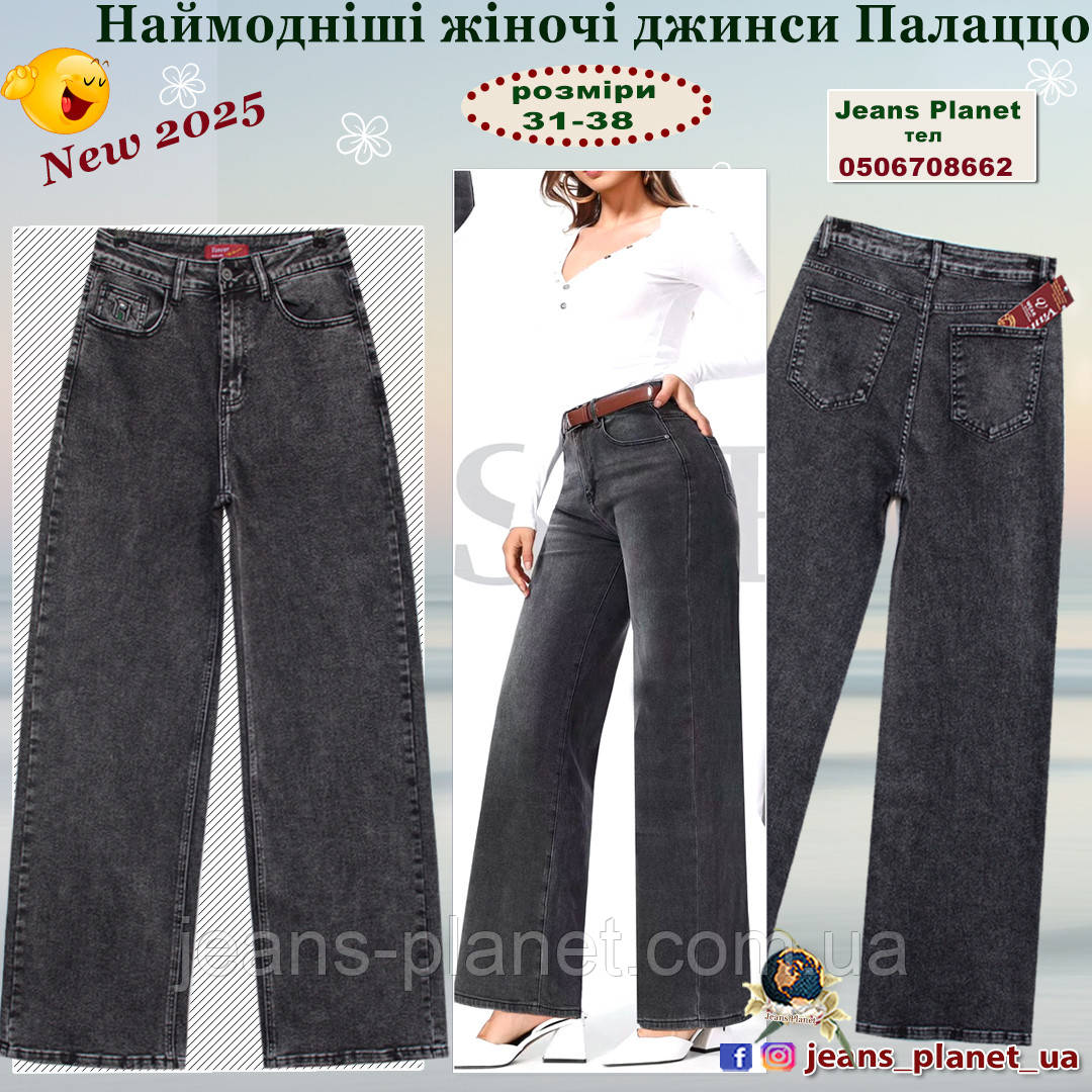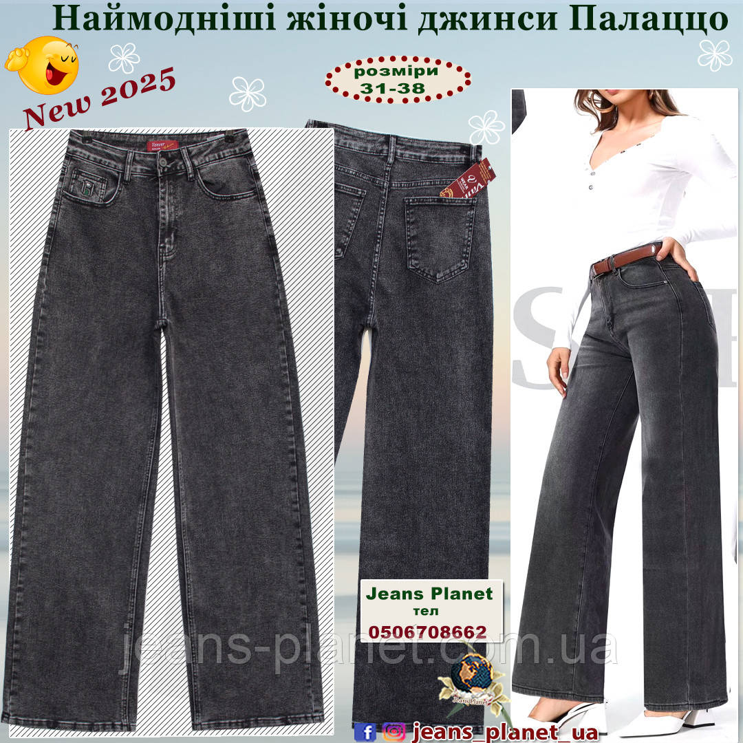 • Нові моделі жіночої джинсової колекції "Весна — Осінь 2025"! Модна зручна модель палаццо ошатного сірого кольору з відтінком графіт.