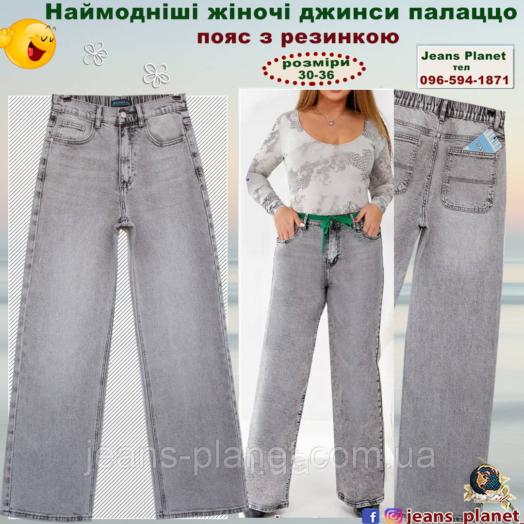 - Супер модна новинка сезону! Прямі вільні джинси палаццо з резинкою у задній частині пояса.